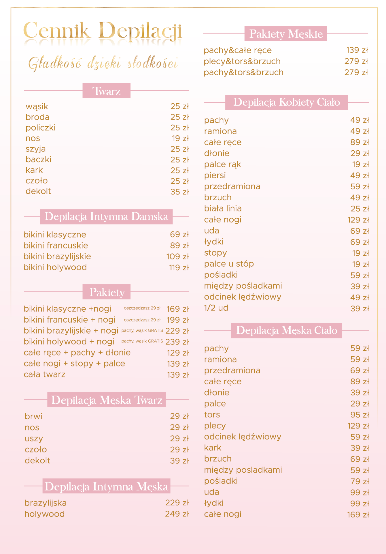 Cennik Usług Depilacji